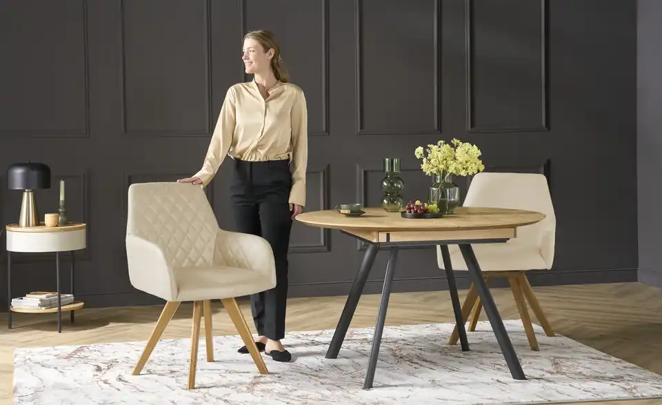 DINE + MINE ist Ihre Marke für markante Speisezimmer-Möbel aus Echtholz und Metall. Mittelpunkt der Esszimmer-Kollektion ist das Tischsystem SigNature aus Akazienholz, bei dem jeder Tisch ein Unikat ist. Die rustikalen Tischplatten verfügen nicht nur über eine einzigartige Maserung, sondern fallen auch durch ihre Längskante in außergewöhnlichen...