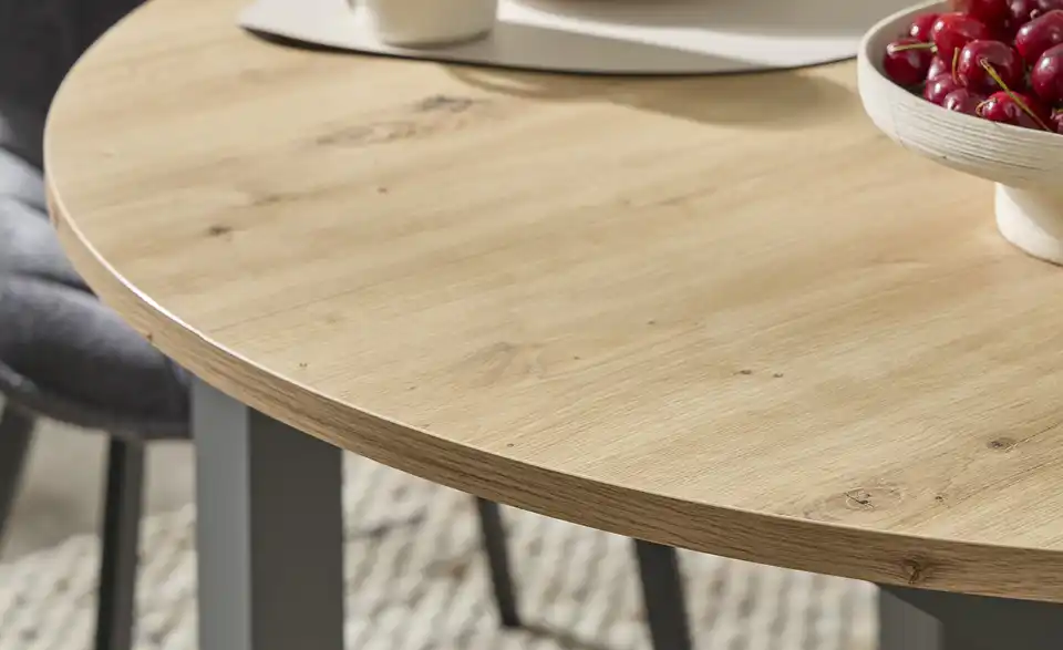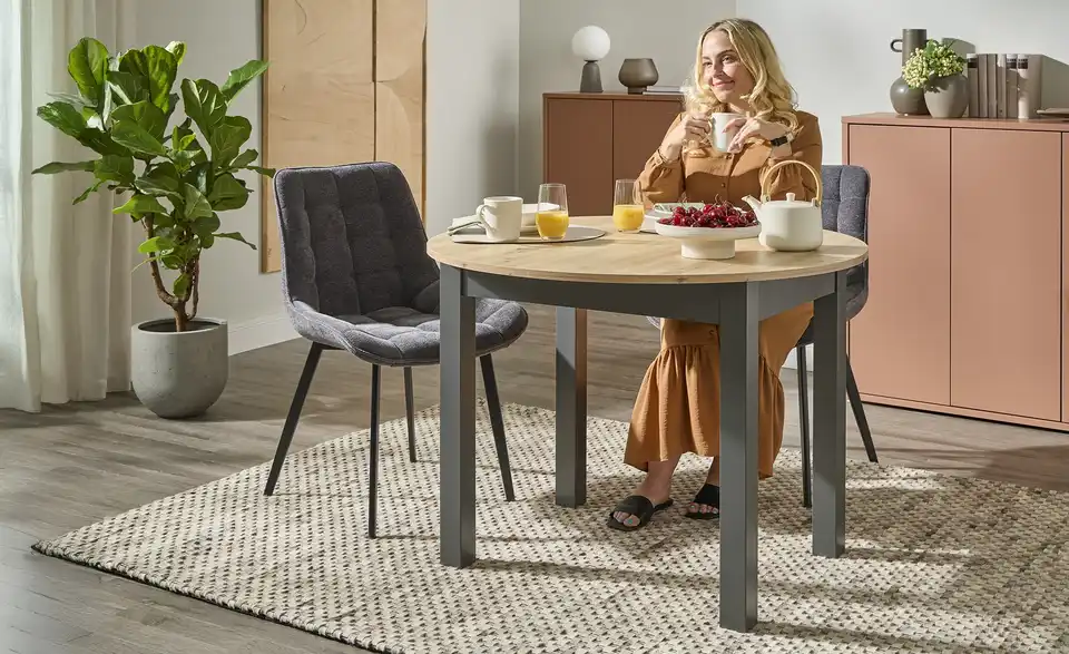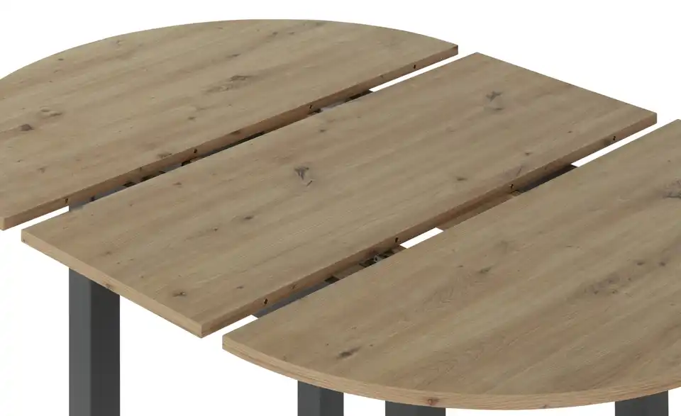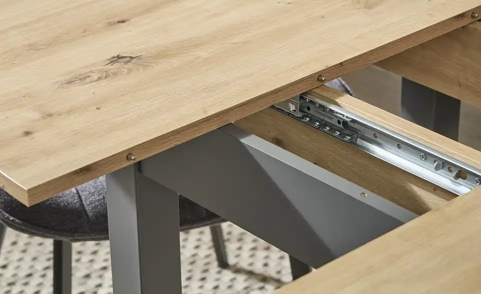 Dieser Tisch kann durch zusätzliche Erweiterungsplatten verlängert werden. Der Tisch eignet sich für bis zu 6 Personen mit Verlängerung. Dank des integrierten Mittelauszugs kann der Tisch problemlos verlängert werden. Hierbei werden die beiden äußeren Platten auseinandergeschoben und die dritte, mittlere Platte, die sich darunter befindet, automatisch nach oben befördert.Lieferung & Versand