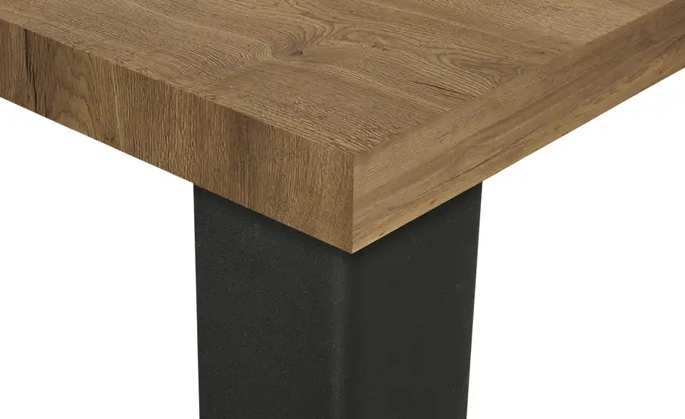 - Mehr zu MaterialTischplatte aus Lamulux in Eiche Braun (Nachbildung)Gestell aus Metall in Schwarz