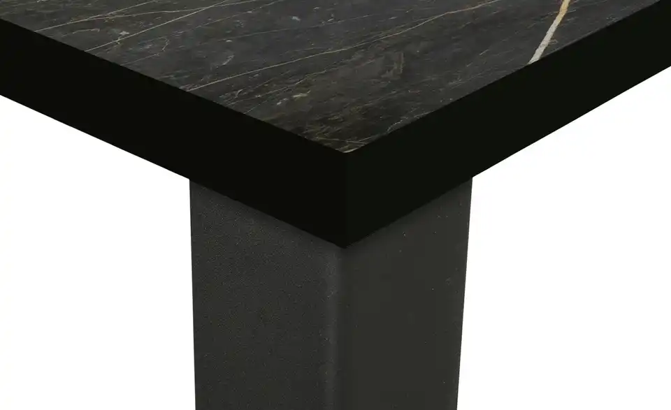 - Mehr zu MaterialTischplatte aus Lamulux in Marmoroptik Schwarz (Nachbildung)Gestell aus Metall in Schwarz