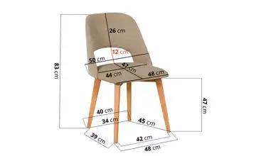 - Mehr zu MaterialDie Stuhlbeine sind aus Buchenholz gefertigt. Der Sitz und die Rückenlehne sind gepolstert.