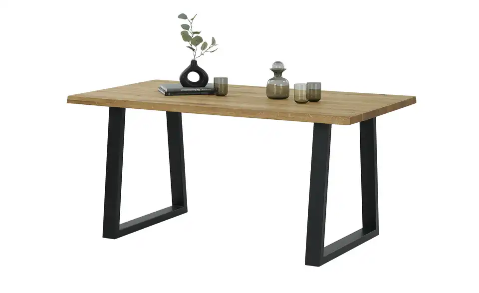 - Mehr zu MaterialTischplatte aus Massivholz in Wildeiche geölt mit durchgehender Lamelle