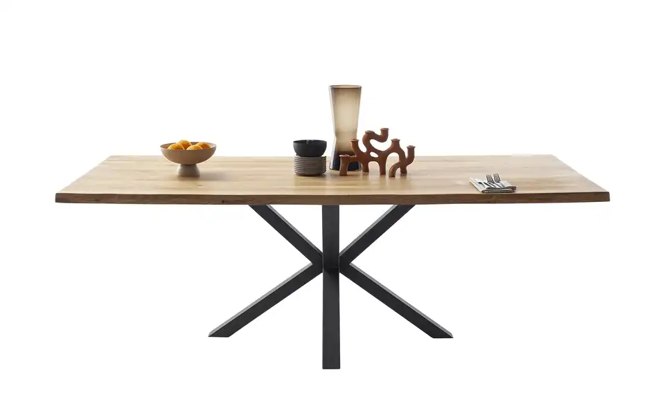- Mehr zu MaterialTischplatte aus Massivholz in Wildeiche geölt mit durchgehender Lamelle