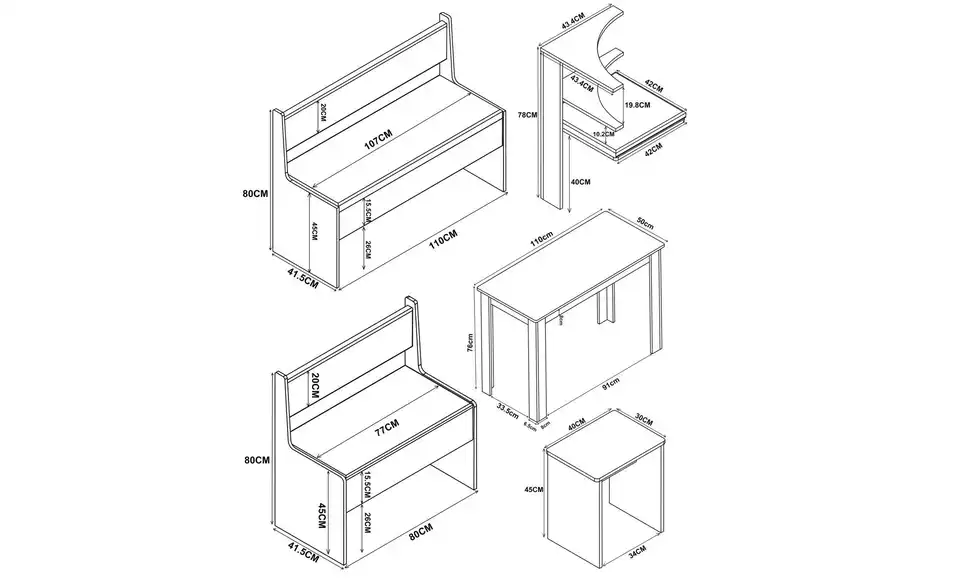 - bestehend aus2 Stühle2 BänkeEsstisch