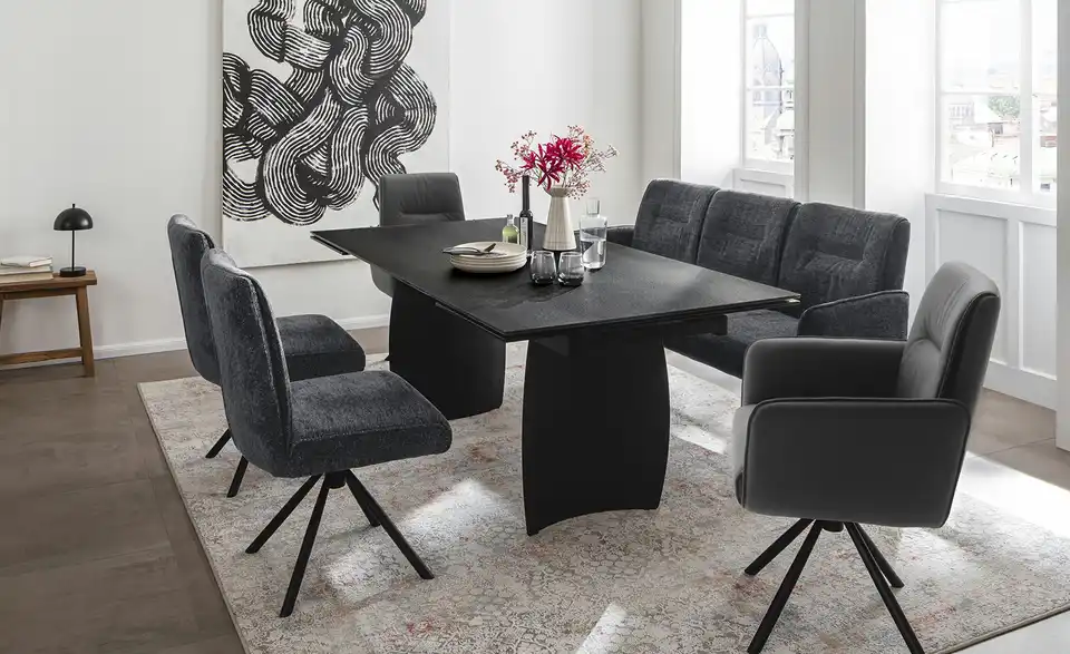 - Mehr zu MaterialTischplatte aus satiniertem Sicherheitsglas in SchwarzGestell aus Metall in Schwarz matt lackiert