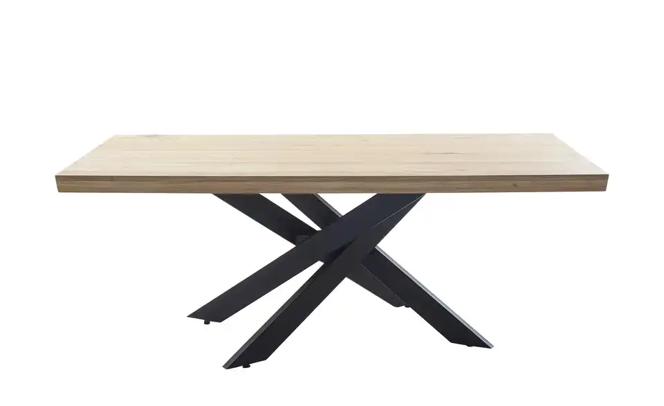 - Mehr zu MaterialTischplatte aus Massivholz in Wildeiche geölt mit durchgehender LamelleGestell Metall Schwarz pulverbeschichtet