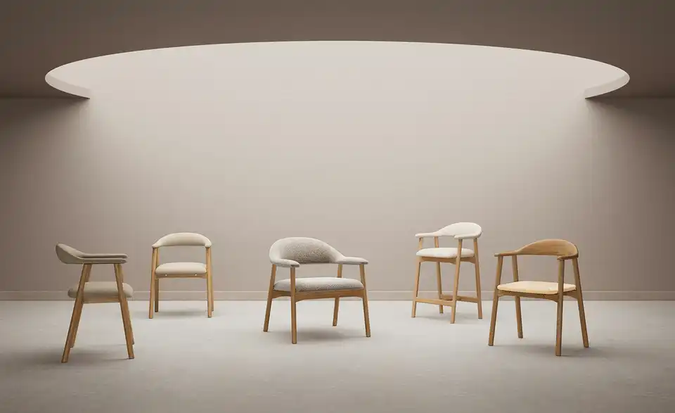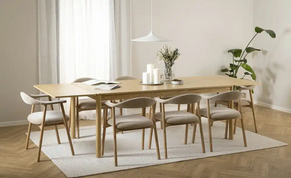 - Material Sitz / RückenlehneMassivholz gepolstert und bezogen