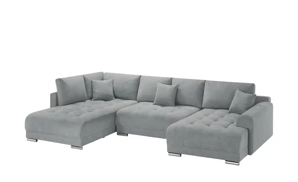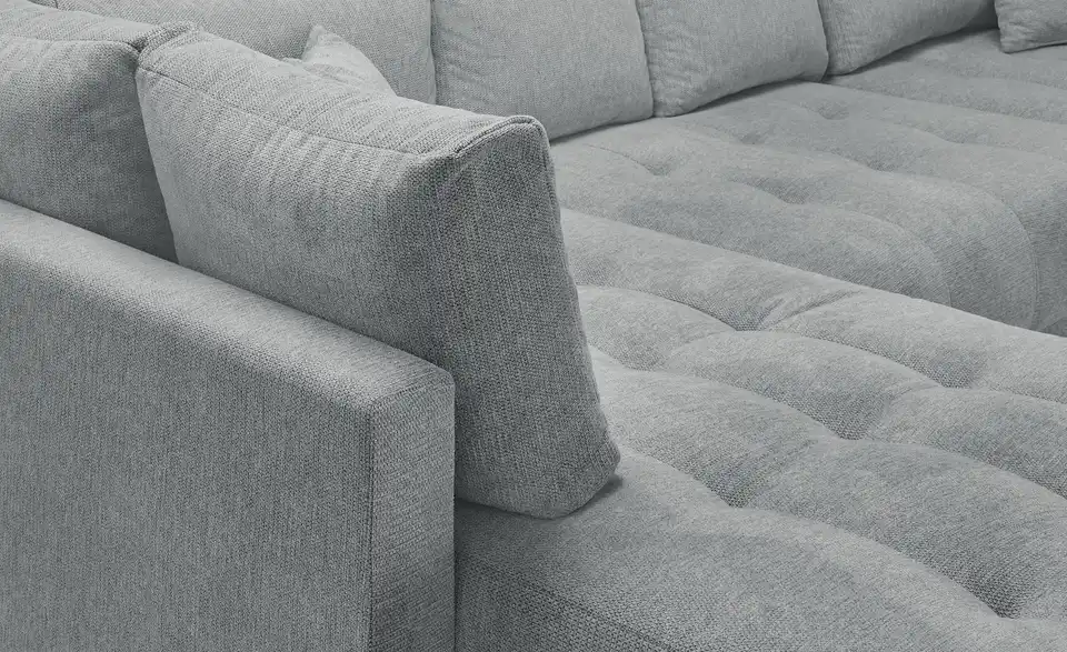 Richtig viel Platz für Freunde und Familie: Diese Wohnlandschaft überzeugt mit zwei einladenden Ottomanen und einer praktischen Schlaffunktion. Sitzen Sie zur Familienfeier bequem zusammen oder genießen Sie in großer Runde einen Filmeabend mit Freunden. Platz gibt es hier genug. Und wenn es doch etwas länger wird, können Sie mit nur wenigen Griffen den Mittelteil umklappen und zu einer Liegefläche umfunktionieren. Dann finden zwei Übernachtungsgäste problemlos Platz. Das dazugehörige Bettzeug lässt sich außerdem im geräumigen Bettkasten unter der Sitzfläche verstauen.Lieferung & Versand