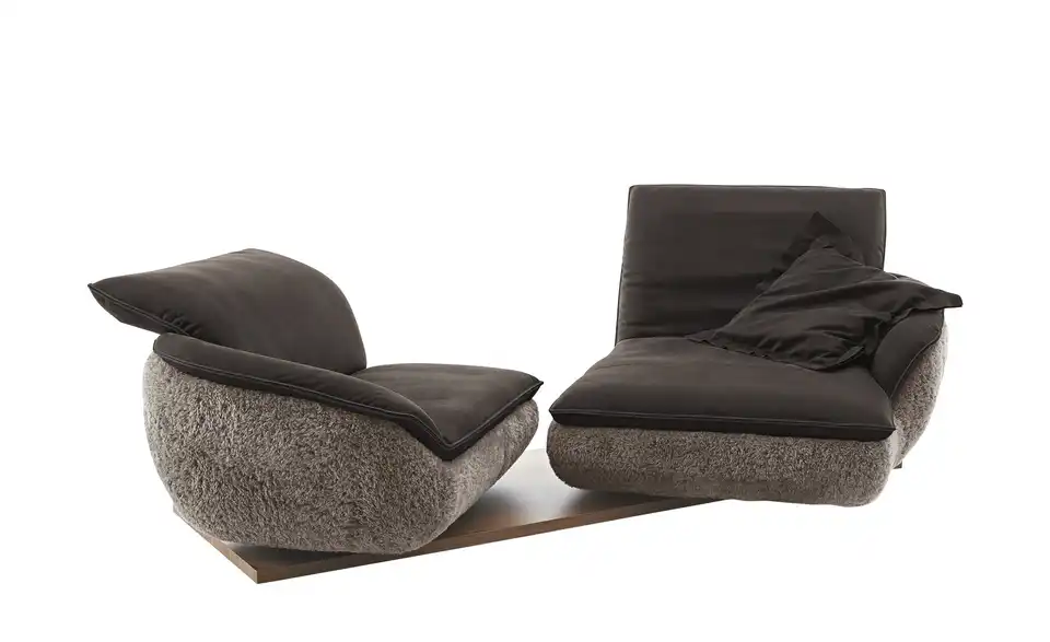 - Mehr zu MaterialSitzfläche mit Leder bezogenKorpus mit Plüschstoff bezogenPlateau aus Wildnussbaum - furniert