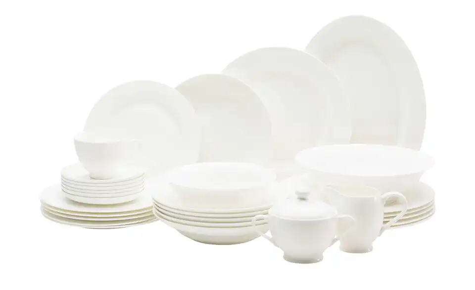 - Lieferumfang / mitgeliefertes Zubehör6x Speiseteller6x Suppenteller6x Dessertteller6x Kaffeetasse6x Kaffeeuntertasse2x Schale1x Servierplatte1x Zuckerdose1x Milchkännchen
