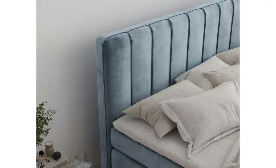 - Elegantes Design – Stilvolles Kopf- und Fußteil mit regelmäßigen Nähten & hochwertiger Veloursstoff (hydrophob, OEKO-TEX zertifiziert, PFC-frei)