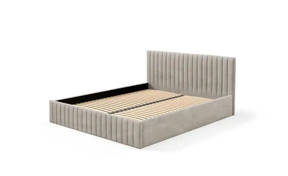 - Ausstattung / FunktionBettkastenöffnung am Fußteilinnen liegender Bettkastenmit GasdruckfederKopfteil rundherum bezogen