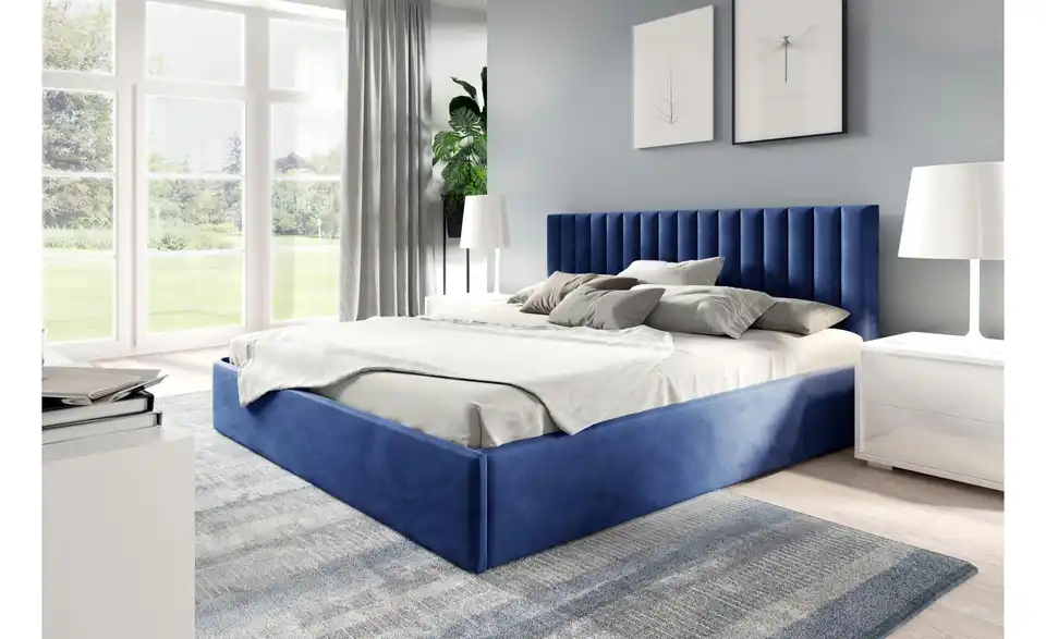 - Ausstattung / FunktionBettkastenöffnung am Fußteilinnen liegender Bettkastenmit GasdruckfederKopfteil rundherum bezogen