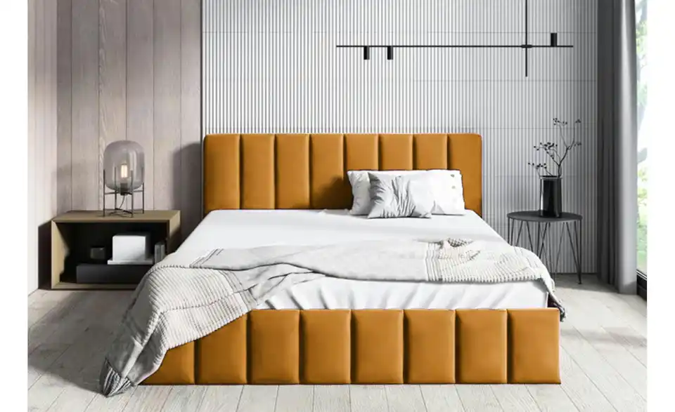 - Ausstattung / FunktionBettkastenöffnung am Fußteilinnen liegender Bettkastenmit GasdruckfederKopfteil rundherum bezogen