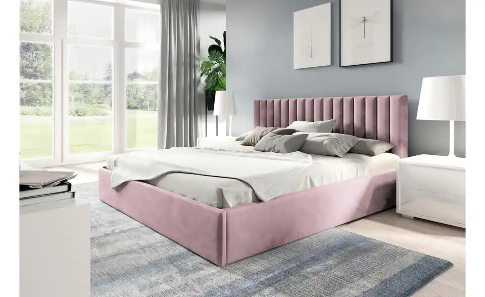 - Ausstattung / FunktionBettkastenöffnung am Fußteilinnen liegender Bettkastenmit GasdruckfederKopfteil rundherum bezogen