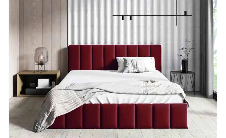 - Ausstattung / FunktionBettkastenöffnung am Fußteilinnen liegender Bettkastenmit GasdruckfederKopfteil rundherum bezogen