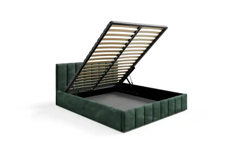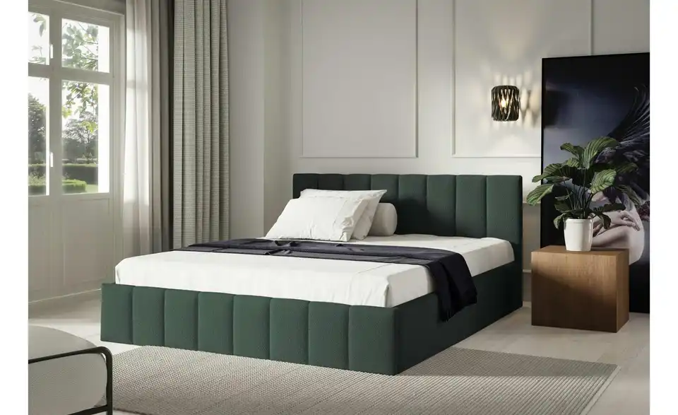 - Ausstattung / FunktionBettkastenöffnung linksBettkastenöffnung rechtsinnen liegender Bettkastenmit GasdruckfederKopfteil rundherum bezogen