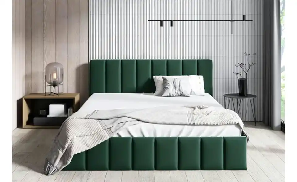 - Ausstattung / FunktionBettkastenöffnung am Fußteilinnen liegender Bettkastenmit GasdruckfederKopfteil rundherum bezogen