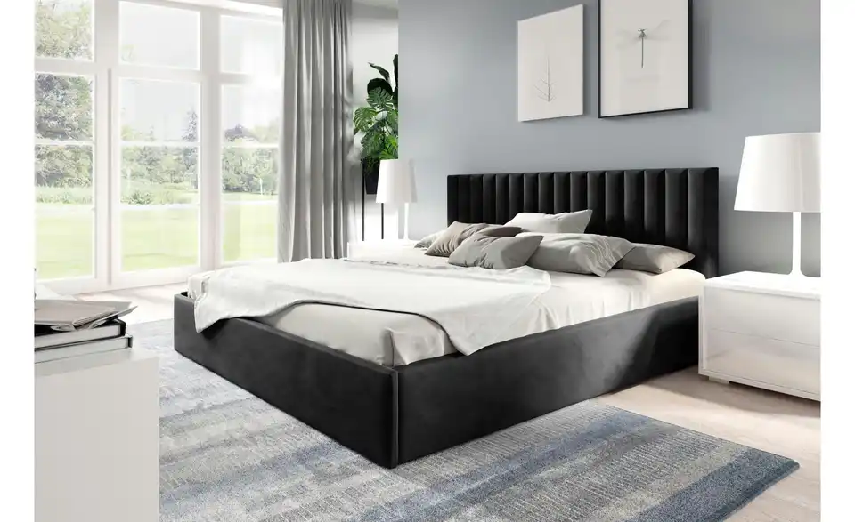 - Ausstattung / FunktionBettkastenöffnung am Fußteilinnen liegender Bettkastenmit GasdruckfederKopfteil rundherum bezogen