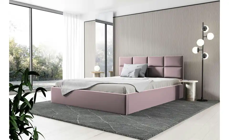 - Ausstattung / FunktionBettkastenöffnung am Fußteilinnen liegender Bettkastenmit GasdruckfederKopfteil rundherum bezogen