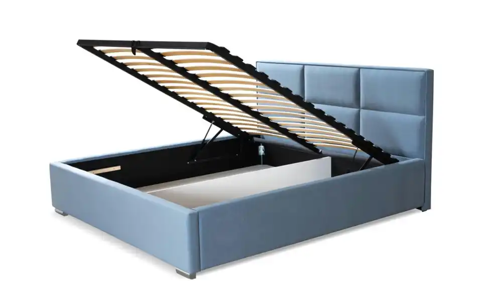 - Ausstattung / FunktionBettkastenöffnung linksBettkastenöffnung rechtsinnen liegender Bettkastenmit GasdruckfederKopfteil rundherum bezogen