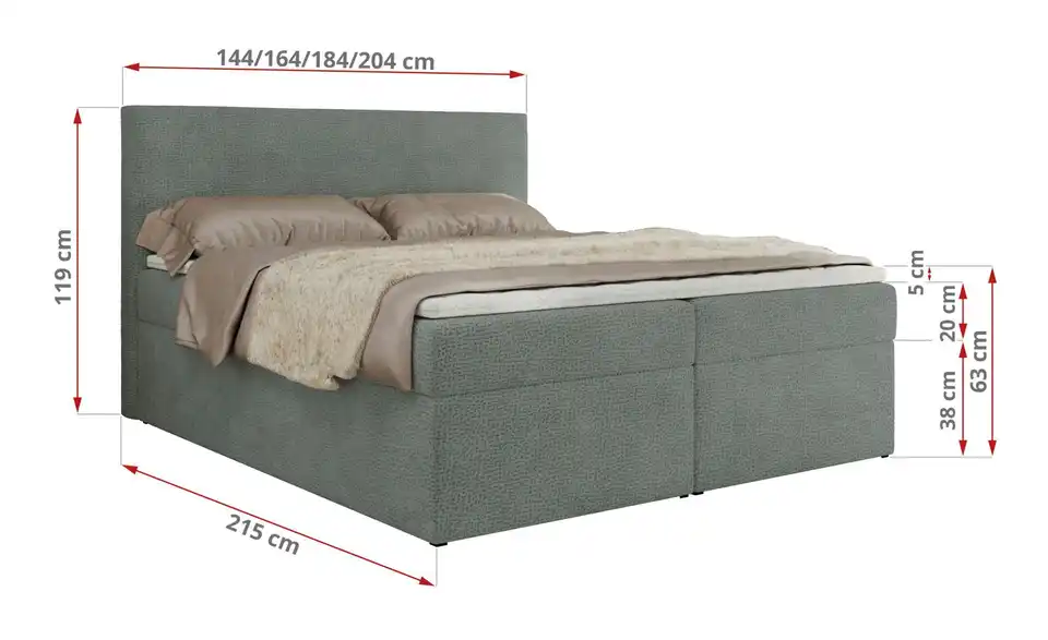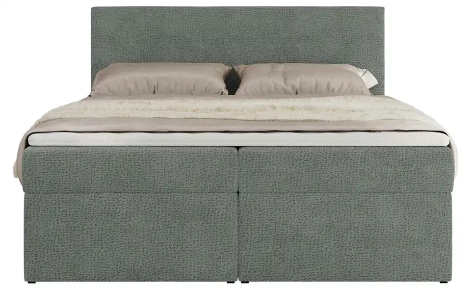 - Lieferumfang / mitgeliefertes ZubehörGraues Polsterbett mit Bettkasten 180x200 cm