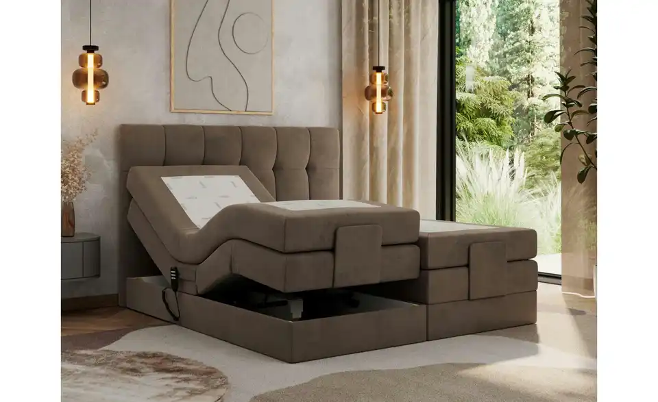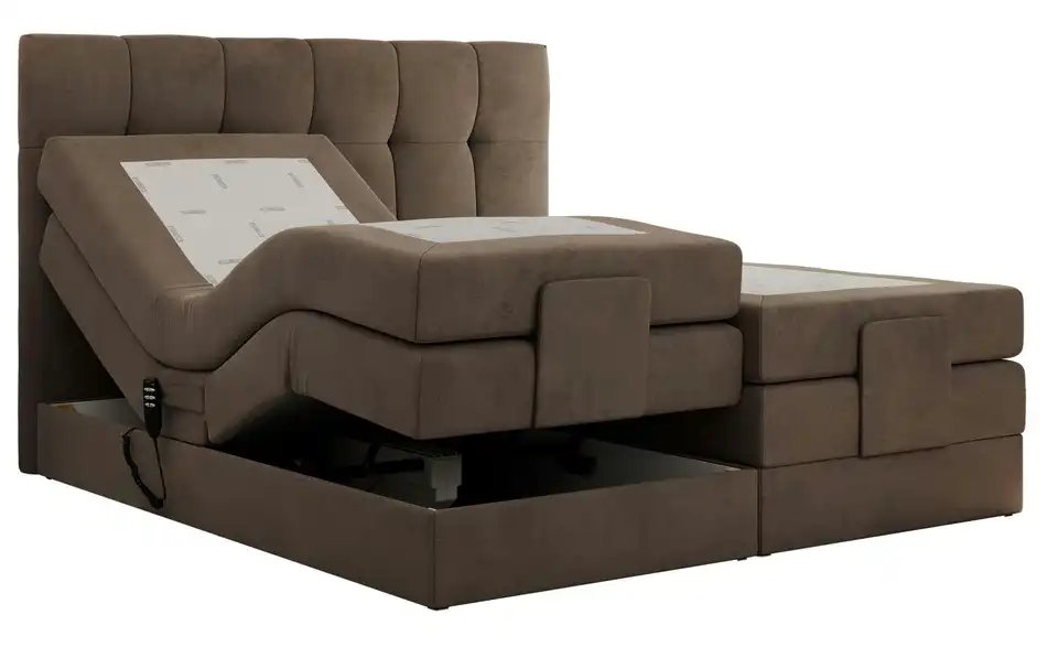 - Lieferumfang / mitgeliefertes ZubehörBronzefarbenes Motor-Boxspringbett mit Bettkasten 180x200 cm