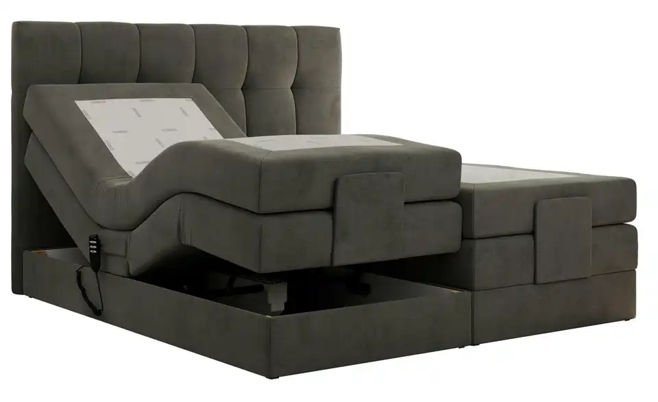 - Lieferumfang / mitgeliefertes ZubehörBasaltgraues Motor-Boxspringbett mit Bettkasten 140x200 cm