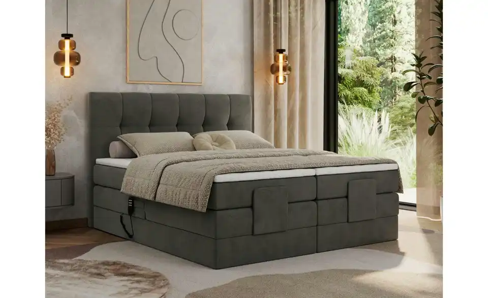 - Lieferumfang / mitgeliefertes ZubehörBasaltgraues Motor-Boxspringbett mit Bettkasten 180x200 cm