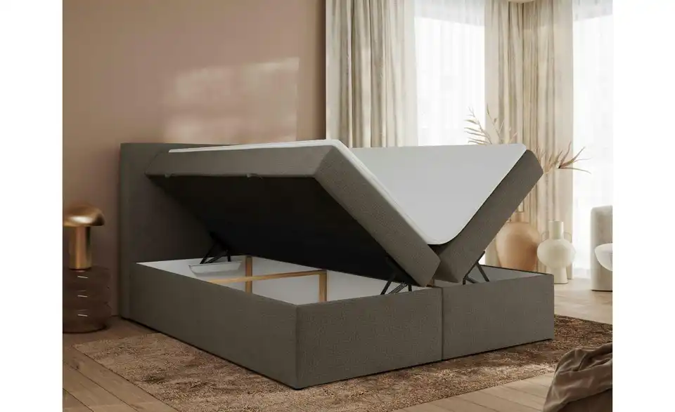 - Lieferumfang / mitgeliefertes ZubehörBraunes Polsterbett mit Bettkasten 160x200 cm