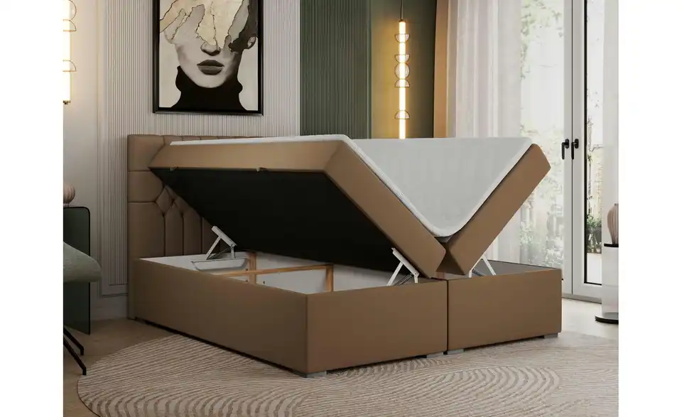 - Lieferumfang / mitgeliefertes ZubehörBraunes Polsterbett mit Bettkasten 120x200 cm