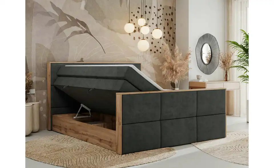 - Lieferumfang / mitgeliefertes ZubehörDunkelgraues Boxspringbett mit Bettkasten 160x200 cm