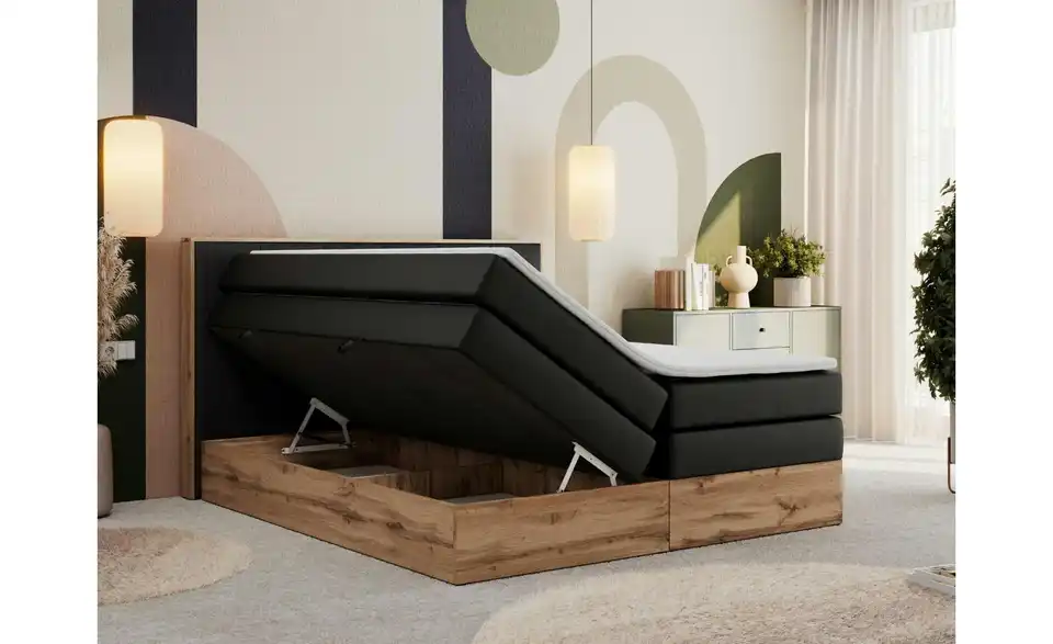 - Lieferumfang / mitgeliefertes ZubehörSchwarzes Boxspringbett mit Bettkasten 200x200 cm