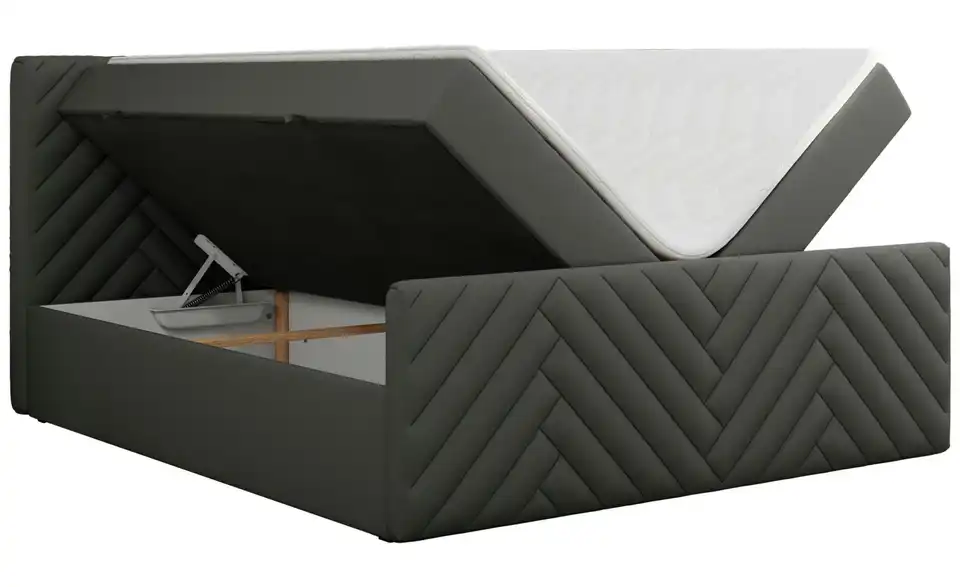 - Lieferumfang / mitgeliefertes ZubehörAnthrazitfarbenes Polsterbett mit Bettkasten 200x200 cm
