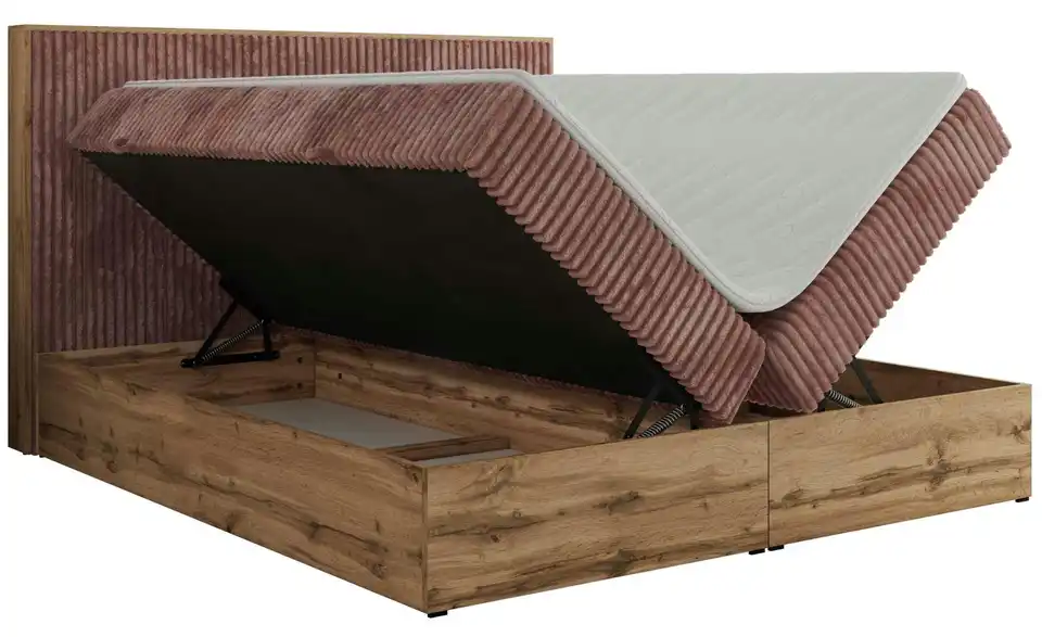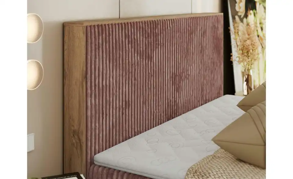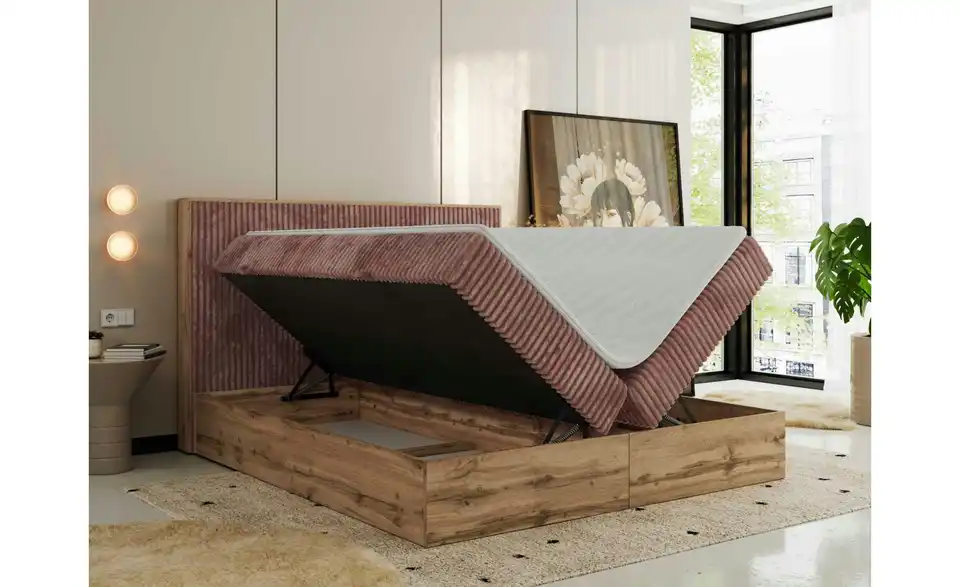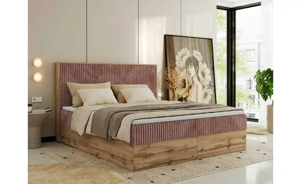 - Lieferumfang / mitgeliefertes ZubehörRosa Polsterbett mit Bettkasten 160x200 cm