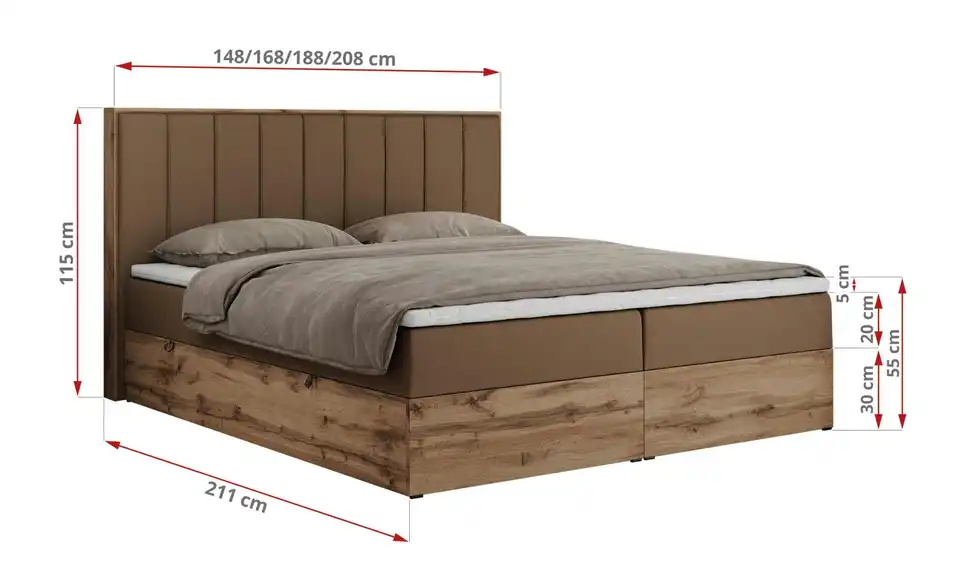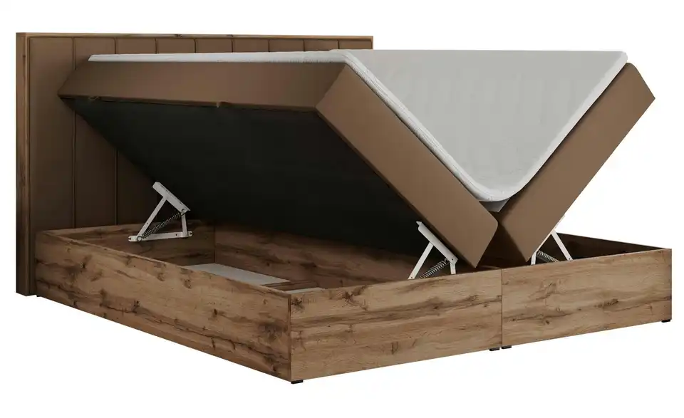 - Lieferumfang / mitgeliefertes ZubehörBraunes Polsterbett mit Bettkasten 160x200 cm