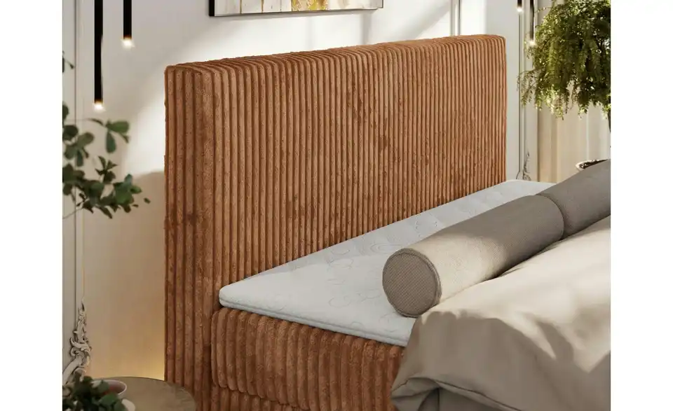 - Lieferumfang / mitgeliefertes ZubehörOrangenes Polsterbett mit Bettkasten 180x200 cm