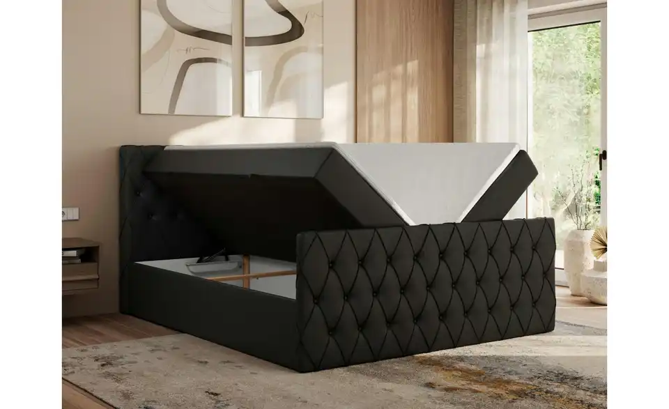 - Lieferumfang / mitgeliefertes ZubehörSchwarzes Polsterbett mit Bettkasten 160x200 cm