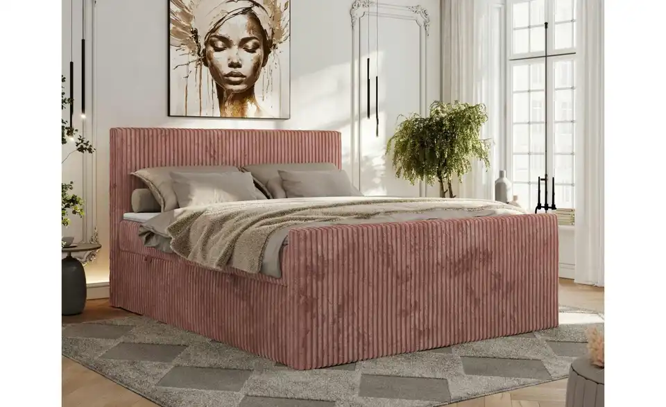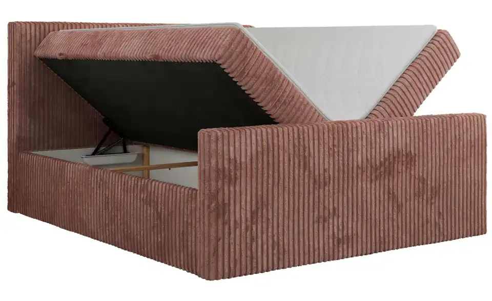 - Lieferumfang / mitgeliefertes ZubehörRosa Polsterbett mit Bettkasten 140x200 cm