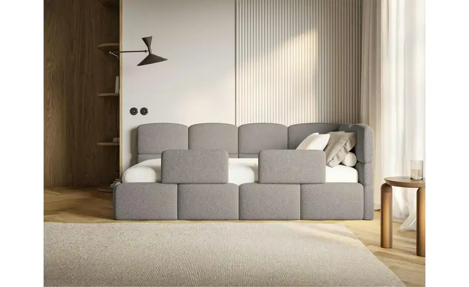 - Lieferumfang / mitgeliefertes ZubehörPolsterliege 90x200 mit Bettkasten Matratze und Rausfallschutz