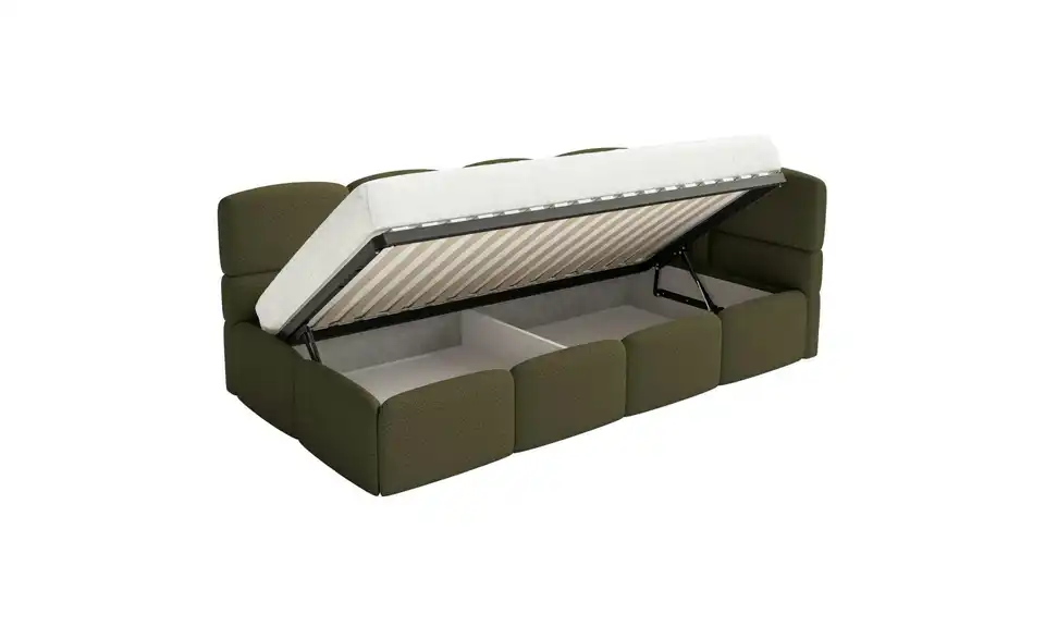 Polsterliege 90x200 mit Bettkasten Matratze und Rausfallschutz