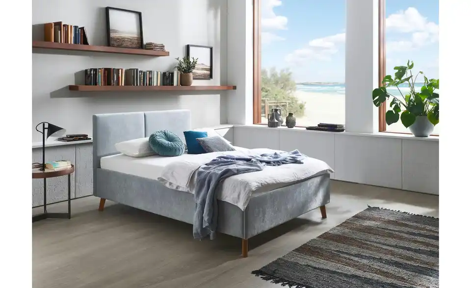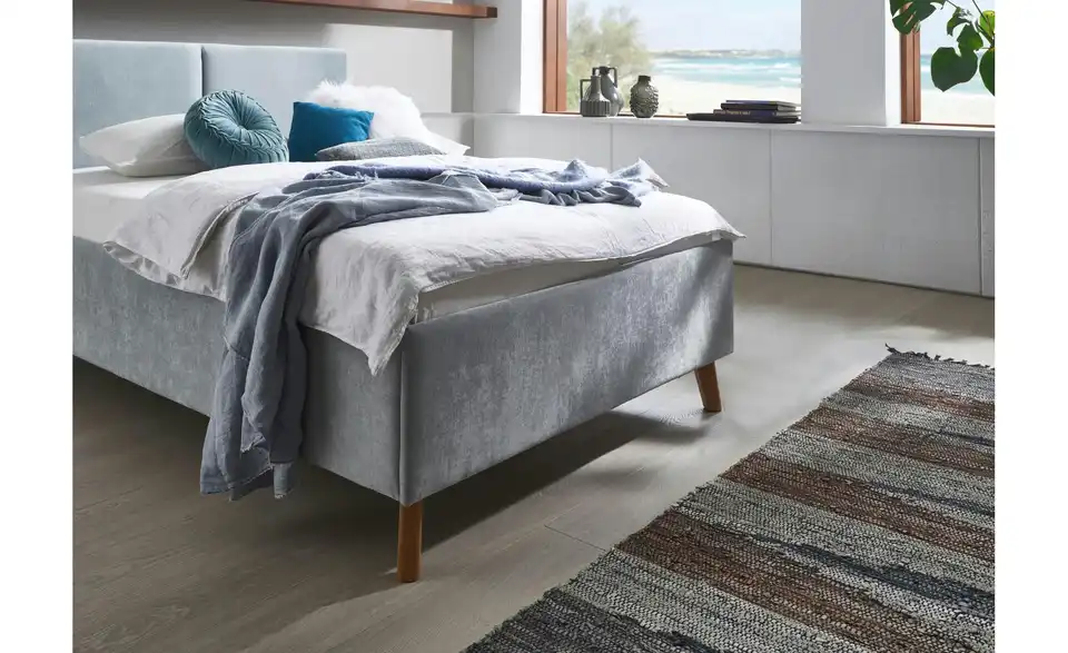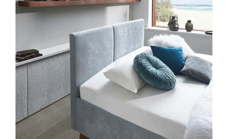 Polsterbett in hellblau