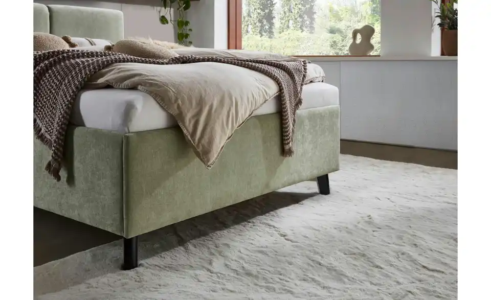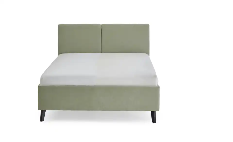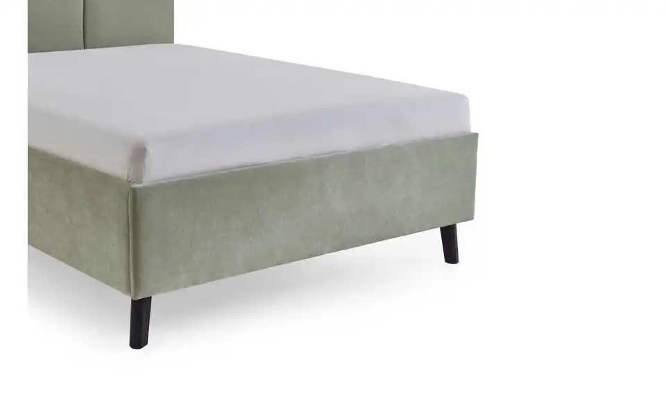- Lieferumfang / mitgeliefertes ZubehörHellgrünes Polsterbett 140x200 cm mit Holzfüßen, schwarz