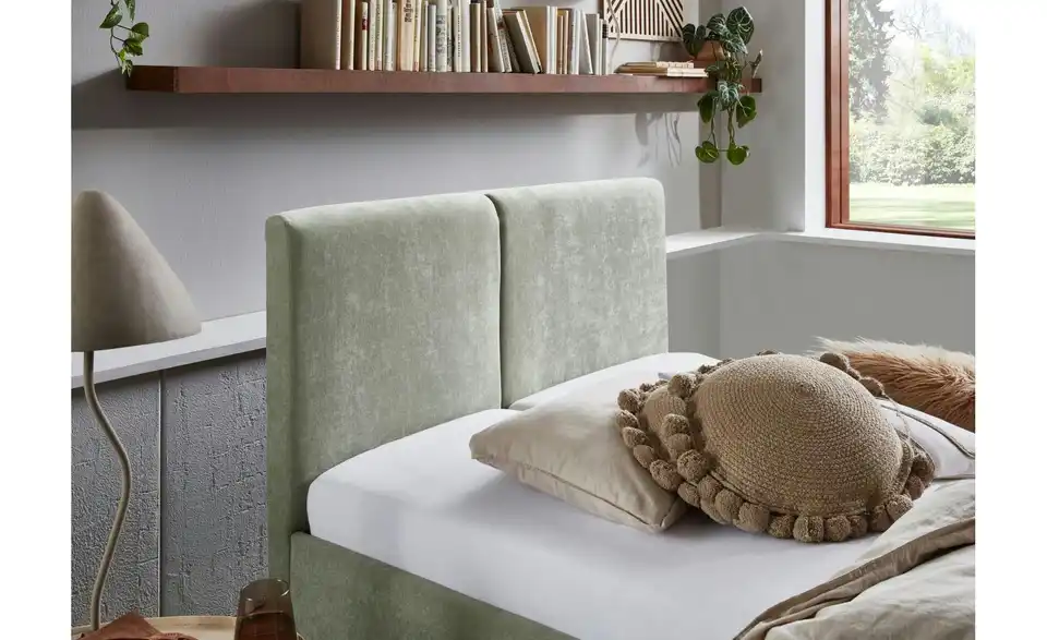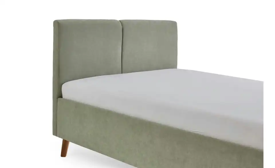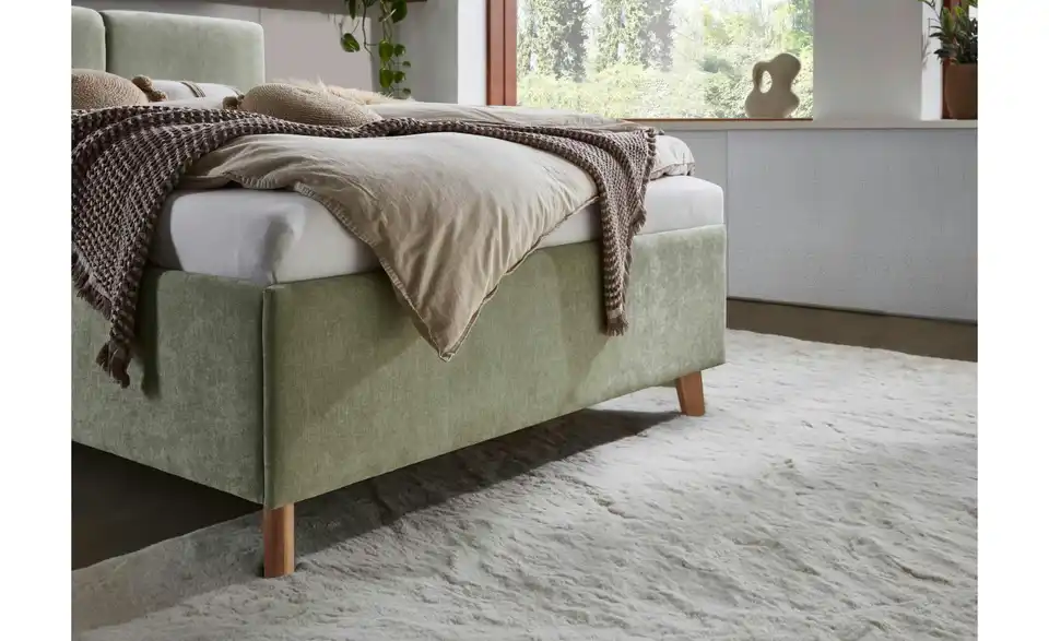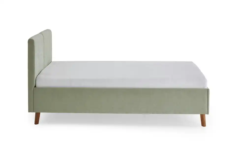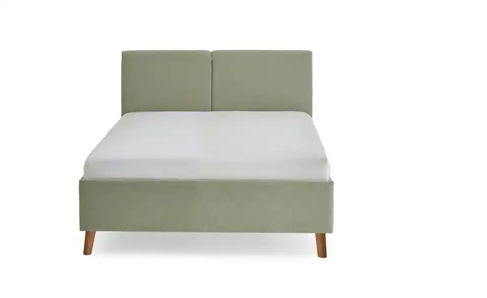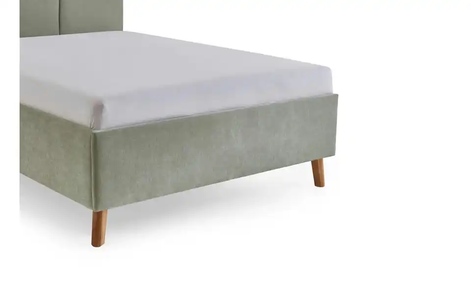 - Lieferumfang / mitgeliefertes ZubehörHellgrünes Polsterbett 140x200 cm mit Holzfüßen, eichefarbig