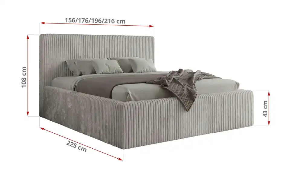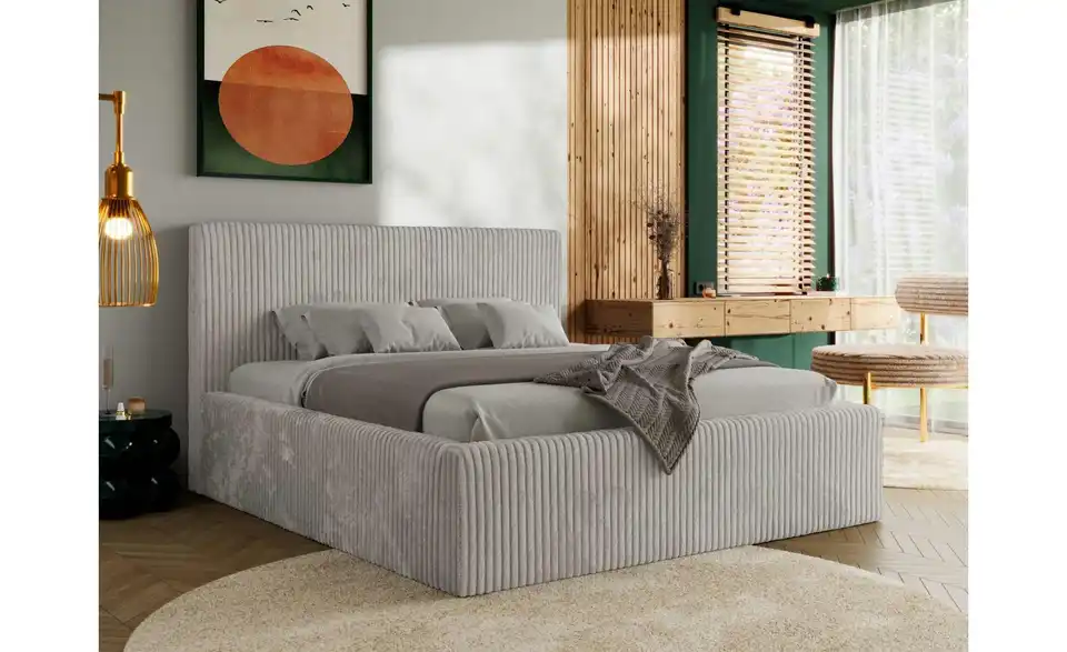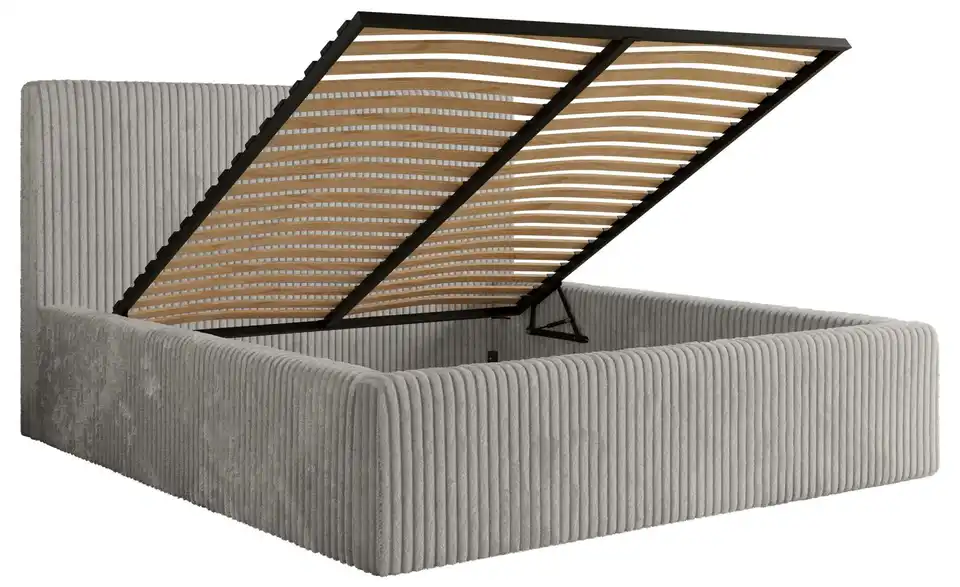 - Lieferumfang / mitgeliefertes ZubehörHellgraues Polsterbett mit Bettkasten 180x200 cm