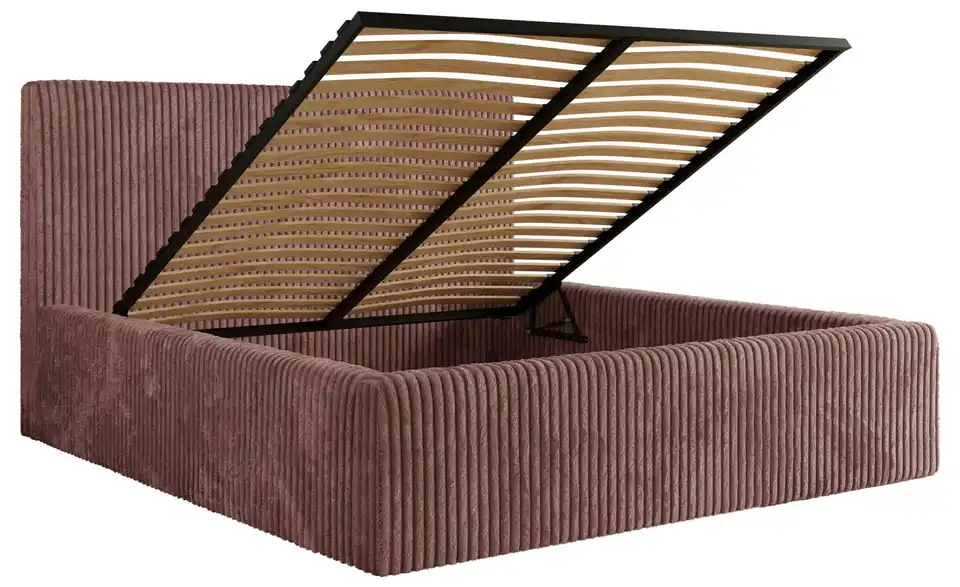 - Lieferumfang / mitgeliefertes ZubehörRosa Polsterbett mit Bettkasten 140x200 cm