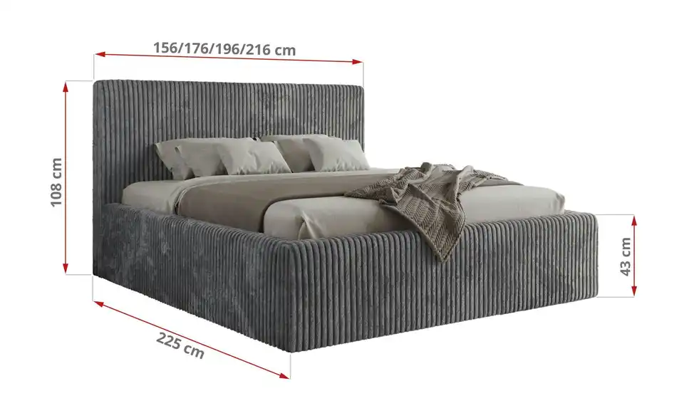 - Lieferumfang / mitgeliefertes ZubehörGraues Polsterbett mit Bettkasten 160x200 cm
