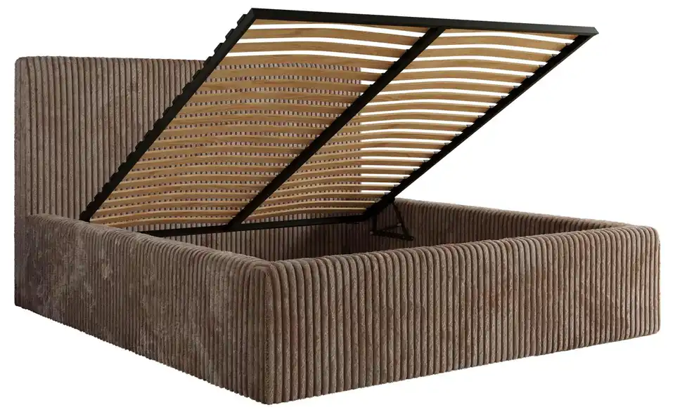 - Lieferumfang / mitgeliefertes ZubehörBraunes Polsterbett mit Bettkasten 160x200 cm