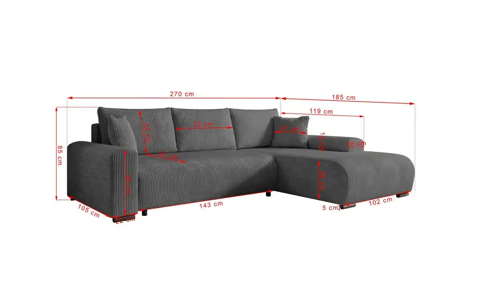 - Lieferumfang / mitgeliefertes ZubehörEcksofa, Kissen, Aufbauanleitung