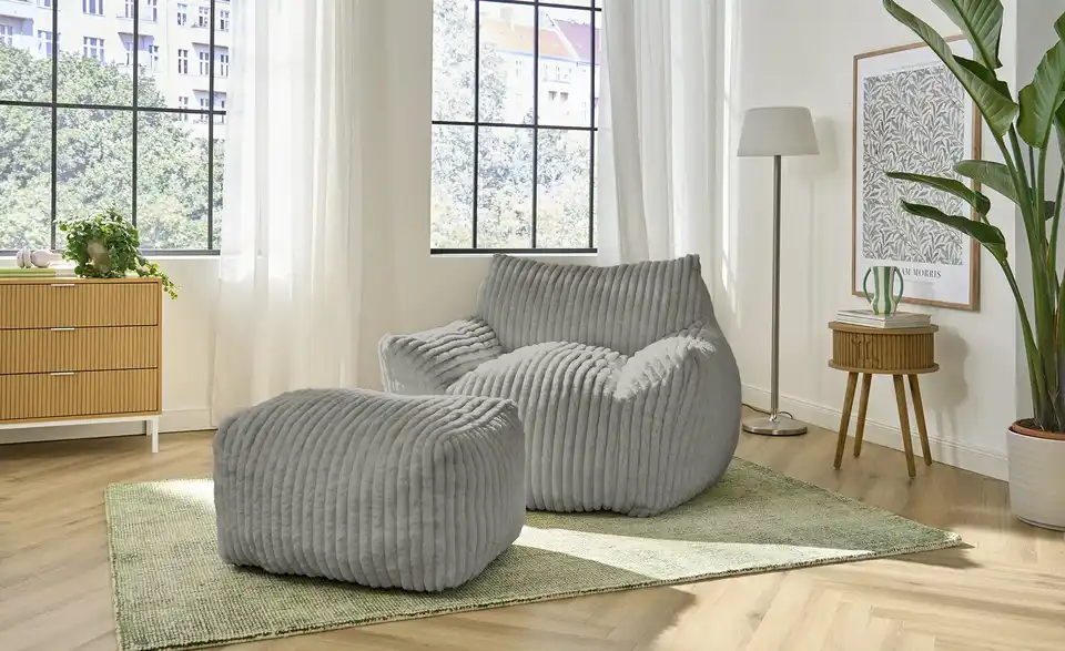 Ruheoase per Paket? Geht! Dieses Sessel-Hocker-Set wird vakuumiert geliefert. Einfach öffnen und die beiden Sitzpolster sind in wenigen Minuten einsatzbereit. Der trendige Cordstoff ist kuschelweich und modern. Entscheiden Sie sich nur noch für eine der kombinationsfreudigen Farben und machen Sie es sich gemütlich.Lieferung & Versand